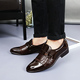 新款潮流英伦商务尖头皮鞋男鳄鱼纹正装鞋百搭男士黑色增高男鞋子