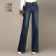 弹力高腰牛仔裤女水洗磨白长裤修身微喇裤大码直筒喇叭口女裤显瘦