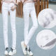 秋季新款韩版简约大码白色破洞牛仔裤女夏修身显瘦小脚铅笔裤长裤