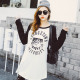 包邮韩版春秋季宽松大码中长款运动休闲插肩袖圆领长袖t体恤女装