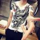 中国风t恤男短袖鸡心领龙图案印花V领短轴t桖血大码修身胖子衣服