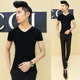 2017夏装新款男士V领短袖T恤纯黑色韩版时尚潮男装紧身修身体恤衫
