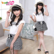 女童短袖裙子套裙2017新款童装夏装女大童公主裙套装韩版两件套