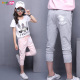2017新款童装女童夏装套装韩版女大童短袖七分裤运动休闲两件套潮