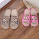 绣花小熊室内外居家家居木地板防滑牛筋底春秋亚麻室内拖鞋夏季