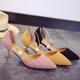 2016夏季新款中跟细跟尖头高跟鞋单鞋绒面侧空百搭韩国显瘦春鞋女