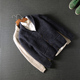 文艺范 外贸原单 开衫撞色羊毛衣外套 修身粗线针织衫男毛衫上衣