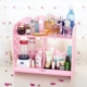 木制加厚宿舍桌面抽屉式化妆品收纳盒韩式可爱梳妆台首饰箱置物架