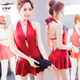 沙滩裙式比基尼四件套泳衣女士小胸大胸聚拢钢托性感游泳装韩国版