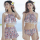 比基尼泳衣女三件套韩国温泉小香风性感小胸聚拢遮肚保守显瘦泳装
