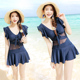 大码泳衣女保守连体裙式遮肚显瘦性感小胸聚拢胖mm泡温泉泳装韩国