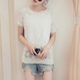 新款镂空针织衫上衣套头韩版宽松蕾丝拼接短袖百搭薄毛衣罩衫女潮