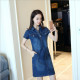 夏季女装韩版新款翻领短袖修身中长款牛仔连衣裙显瘦裙子