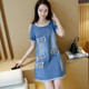 牛仔连衣裙春夏新款中长款时尚大码宽松露肩短袖圆领修身牛仔裙潮