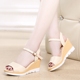 坡跟凉鞋女鞋2017夏季新款舒适百搭松糕百搭休闲简约厚底中跟凉鞋