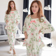 睡衣女春秋纯棉长袖大码加大宽松翻领开衫睡衣女秋女士家居服套装