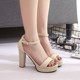 2017夏季新款欧美粗跟性感超高跟防水台一字扣带露趾简约凉鞋女