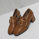 35-39码 欧美范 复古方头深口金属扣一脚蹬粗跟女单鞋百搭工作鞋