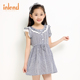 inland童装2017新款夏装女童蕾丝条纹连衣裙女孩裙子公主裙百褶裙