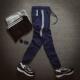 经典复古两道杠黑白条潮男休闲小脚长裤韩版修身束腿纯棉运动卫裤