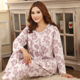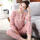 睡衣女春秋季纯棉睡衣女中老年全棉开襟长袖睡衣加大码家居服套装