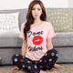 睡衣女士夏季纯棉短袖长裤夏天薄款加大码韩版休闲全棉家居服套装