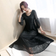 加肥加大码女装胖mm连衣裙秋装新款胖妹妹200斤显瘦勾花镂空a字裙