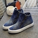 名将新款韩版女帆布鞋女 高帮破洞牛仔拉链女式休闲帆布鞋学生鞋