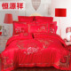 恒源祥床品婚庆四件套大红床单被套结婚新婚1.8m贡缎提花绣花套件