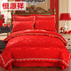 恒源祥贡缎提花婚庆四件套大红色婚庆床品被单被套四件套正品特价