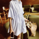 韩国代购夏季网纱拼接字母卫衣裙女五分袖宽松显瘦鱼尾连衣裙长款
