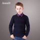 安奈儿童装秋冬男童纯色打底毛衣6-12-岁中大童套头圆领羊毛衫