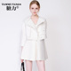糖力 2015秋装新品欧美 白色通勤淑女落肩长款翻领外套