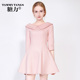 糖力 2015秋季欧美 粉色淑女收腰修身蓬蓬连衣裙秋