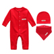 春秋款新生儿宝宝连体衣3件套装衣服帽子围嘴纯棉宝宝爬服哈衣