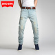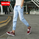春夏青少年男士大码中腰潮蓝白雪花牛仔裤男生修身型高弹力小脚裤
