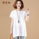 倩芝琳原创大码亚麻棉麻刺绣T恤中长款圆领短袖上衣女装2017夏装