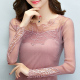2017韩版秋装长袖蕾丝打底衫性感圆领百搭镂空网纱修身大码上衣女