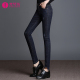 梵琴坊2017春装高腰深色磨白牛仔裤女长裤大码弹力修身小脚铅笔裤