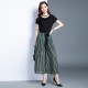舒尼诗阔腿裤套装女2017夏新款时尚休闲百搭雪纺两件套条纹九分裤