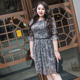 GLEC大码女装 胖mm2017夏装新款植绒提花显瘦连衣裙胖妹妹雪纺裙