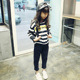 女童打底衫2017新品春款童装韩版中大童圆领条纹印花长袖纯棉T恤