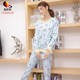 雷欧斯秋季新款女士睡衣两件套 中长款印花长袖长裤 家居服套装女