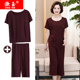 端午节衣服中老年人女夏装雪纺短袖套装加肥加大50岁60妈妈两件套