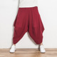 中国风亚麻哈伦裤吊裆跨裤棉麻料宽松休闲裤阔腿裤男装九分宽腿裤