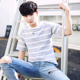 短袖T恤男夏季韩版潮流学生青少年修身圆领半袖条纹体恤衫上衣服