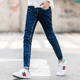 春秋款男士破洞牛仔裤男青少年学生韩版修身直筒小脚裤男长裤子潮