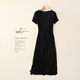 欧美单夏季新款V领显瘦短袖连衣裙拼蕾丝纯色莫代尔手感A字长裙