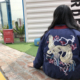 包邮饭粒家复古着刺绣鹤加厚秋冬夹棉衣男女中性长袖学生宽松外套