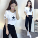 2017夏季新款女装短袖t恤雪纺九分阔腿哈伦裤套装女时尚潮两件套